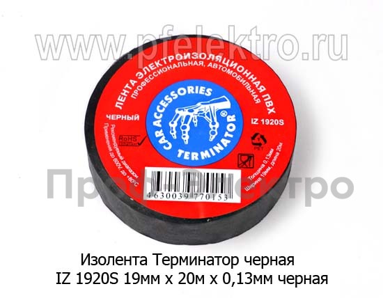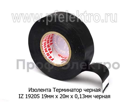 Изолента IZ 1920S 19мм х 20м х 0,13мм черная Изолента Терминатор, ПВХ, все т/с (Terminator)