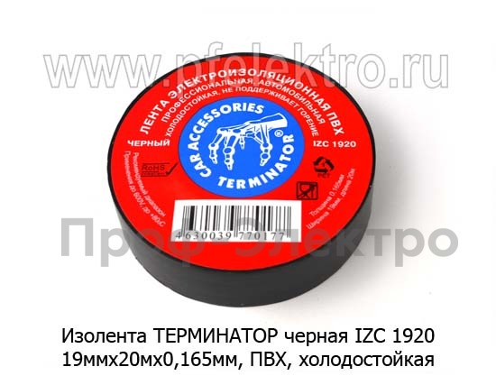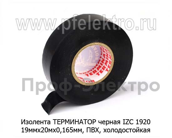 Изолента IZC 1920 19мм х 20м х 0,165мм черная Изолента Терминатор, ПВХ, холодостойкая, все т/с (Terminator)