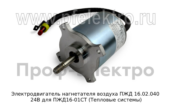 Этот электродвигатель предназначен для использования в нагнетателе воздуха предпускового жидкостного подогревателя двигателя ПЖД16-01СТ. Он обеспечивает надежную работу устройства благодаря своей высокой производительности и качеству. Электродвигатель работает на напряжении 24В и произведен компанией Тепловые системы, что гарантирует его долговечность и надежность. Приобретая этот товар, вы можете быть уверены в его качестве и эффективности.