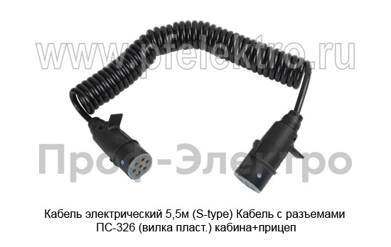 Кабель электрический 5,5м (S-type) Кабель с разъемами ПС-326 ( вилка пласт.) кабина+прицеп, грузовые т/с (KR)