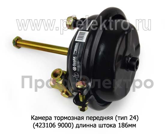 Камера тормозная (тип 24) Длинный шток (423106 9000) Тормозная камера передняя (тип 24 длинна штока 186мм) для камаз (ZTD)