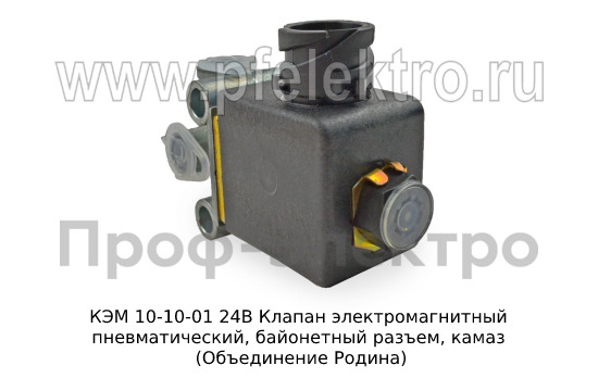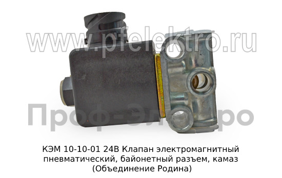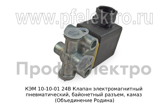 КЭМ 10-10-01 24В Клапан электромагнитный пневматический, байонетный разъем, камаз (Объединение Родина)