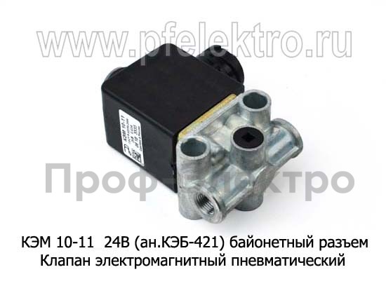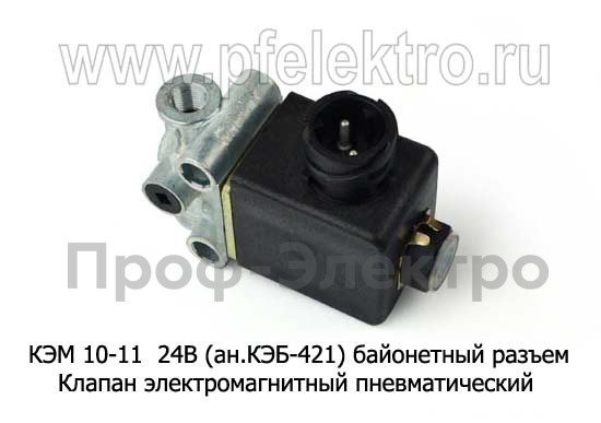 КЭМ 10-11 24В (ан.КЭБ-421) Клапан электромагнитный пневматический, байонетный разъем, камаз (Объединение Родина)