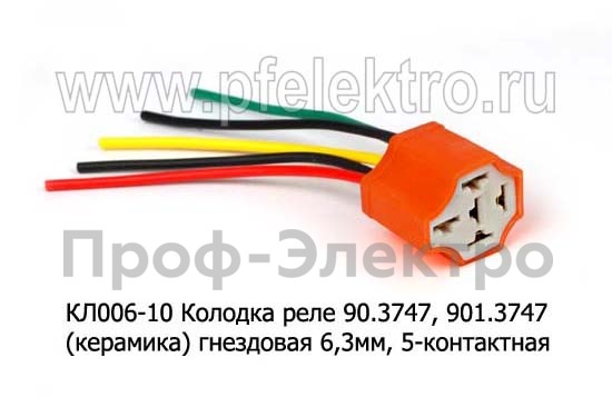 КЛ006-10 Колодка реле 90.3747, 901.3747 (керамика) с проводами Колодка гнездовая 6,3мм, 5-конт., все т/с