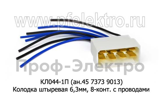 КЛ044-1П (ан.45 7373 9013) Колодка штыревая 6,3мм, 8-конт. с проводами, все т/с (Диалуч)