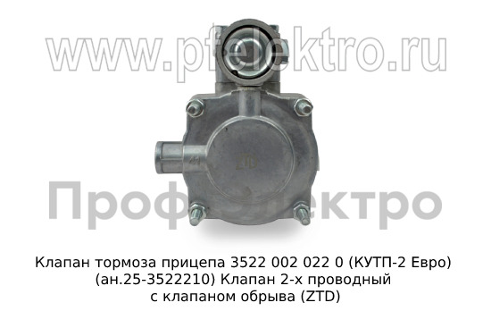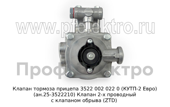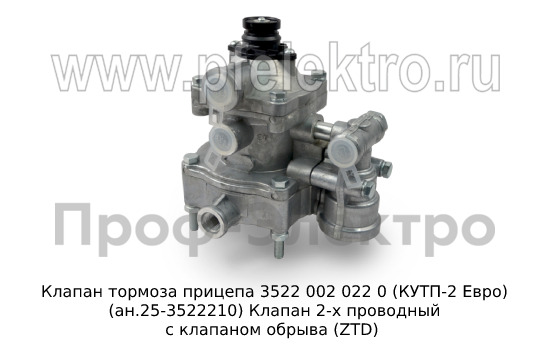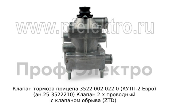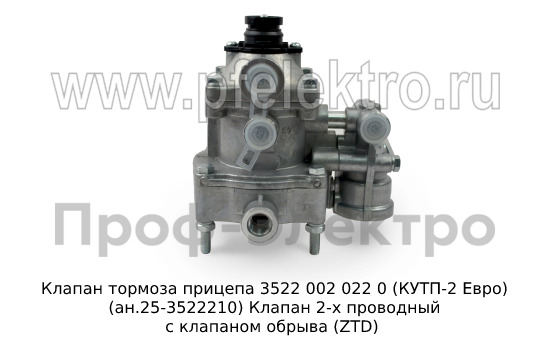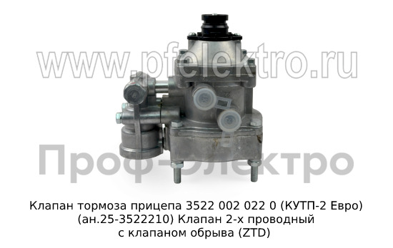 Клапан тормоза прицепа 3522 002 022 0 (КУТП-2 Евро) (ан.25-3522210) Клапан 2-х проводный с клапаном обрыва для камаз, урал, зил (ZTD)