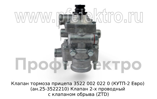 Артикул: Клапан тормоза прицепа 3522 002 022 0 (КУТП-2 Евро) (ан.25-3522210)
