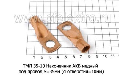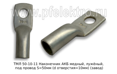 Наконечник АКБ медный, под провод S=50мм (d отверстия=10мм) все т/с (завод)