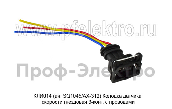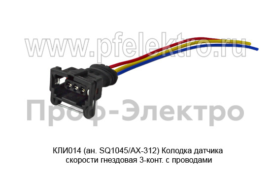 КЛИ014 (ан. SQ1045/АХ-312) Колодка датчика скорости гнездовая 3-конт. с проводами (Диалуч)