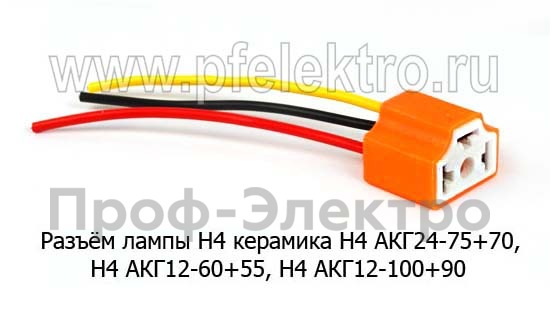Колодка лампы Н4 керамика (ан.КЛ 126-01) Колодка с проводами (АКГ24-75+70 Н4, АКГ12-60+55 Н4, АКГ-100+90) все т/с