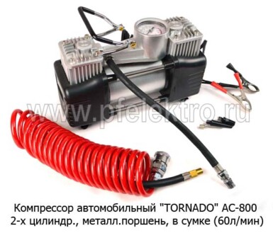 Компрессор 2-х цилиндровый, металлический поршень, гибкий шланг в сумке, (60л/мин) все т/с