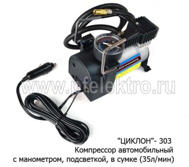Компрессор с манометром с подсветкой, в сумке (35л/мин) все т/с
