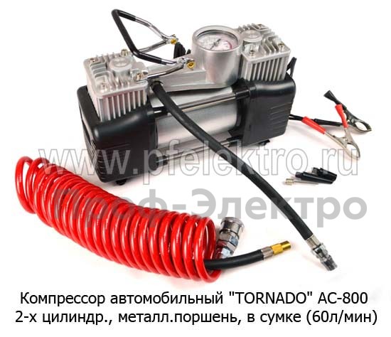 Компрессор автомобильный DQB-008 12В-360Вт Компрессор 2-х цилиндровый, металлический поршень, гибкий шланг в сумке, (60л/мин) все т/с
