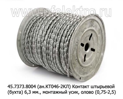Контакт штыревой (10/3000шт./бухта) 6,3 мм., монтажный усик, олово (сечение провода 4,0-6,0 мм) (Копир)