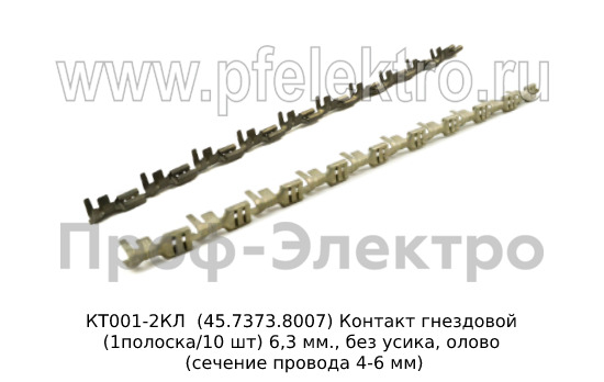 КТ001-2КЛ (45.7373.8007) Контакт гнездовой (1полоска/10 шт) 6,3 мм., без усика, олово (сечение провода 4-6 мм) все т/с (ДиаЛуч)