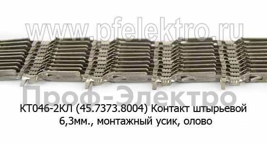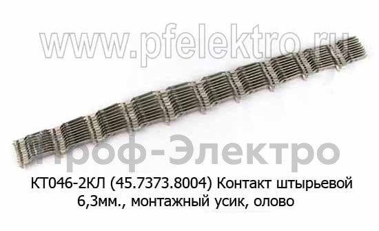 КТ046-2КЛ (ан.45 7373 8004-02) Контакт штыревой 6,3 мм. (сеч. 0,75-2,5), (1 полоска/10 шт), монтажный усик, олово, все т/с (Диалуч)