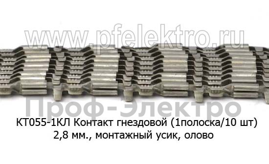 КТ055-1КЛ (ан.45.7373.8865) Контакт гнездовой (1полоска/10 шт) 2.8 мм., монт.усик, олово, все т/с (Диалуч)