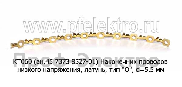 КТ060 (ан.45 7373 8527-01) Наконечник проводов низкого напряжения, латунь, кольцевой, тип "О", d=5.5 мм (1полоска/10 шт) все т/с (Диалуч)