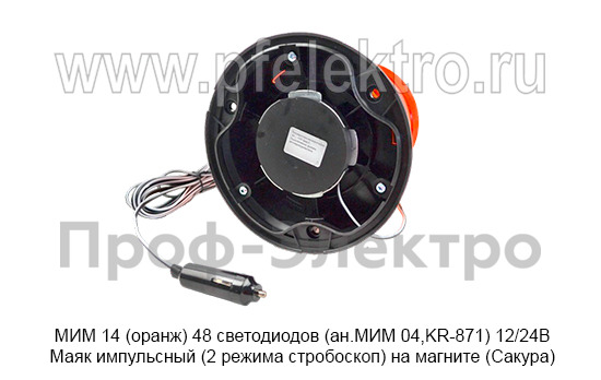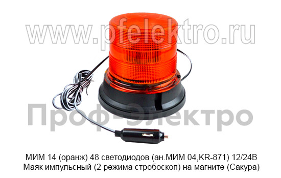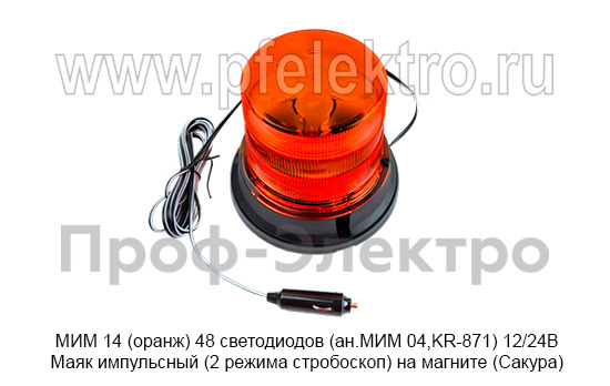 МИМ 14 (оранж) 48 светодиодов (ан.МИМ 04,KR-871) 12/24В Маяк импульсный (2 режима стробоскоп) на магните дорожная и спецтехника (Сакура)