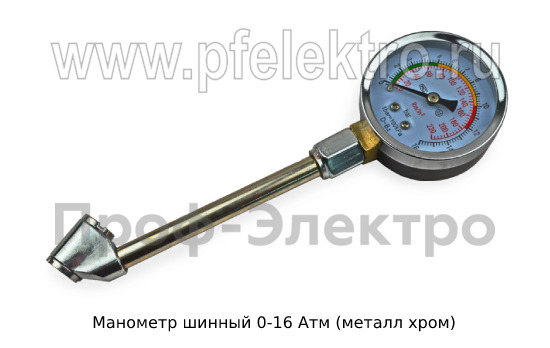 Манометр шинный 0-16 Атм Манометр (металл хром) для камаз, зил, маз, все т/с