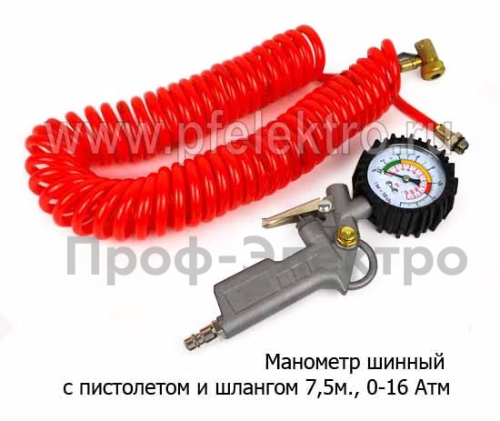 Артикул: Манометр шинный с пистолетом и шлангом спиральным 7,5м