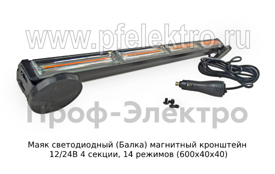 Маяк светодиодный (Балка) магнитный кронштейн 12/24В Светодиодная балка, 4 секции, 14 режимов (600х40х40) дорожная и спецтехника (К)