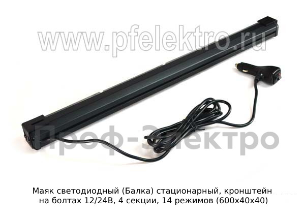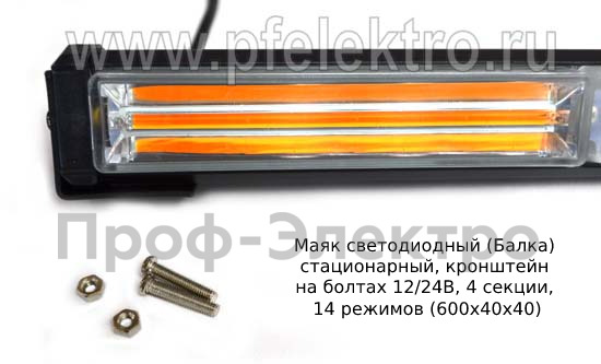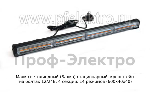 Маяк светодиодный (Балка G0414) стационарный, кронштейн на болтах 12/24В Светодиодная балка, 4 секции, 14 режимов (600х40х40) спецтехника (К)