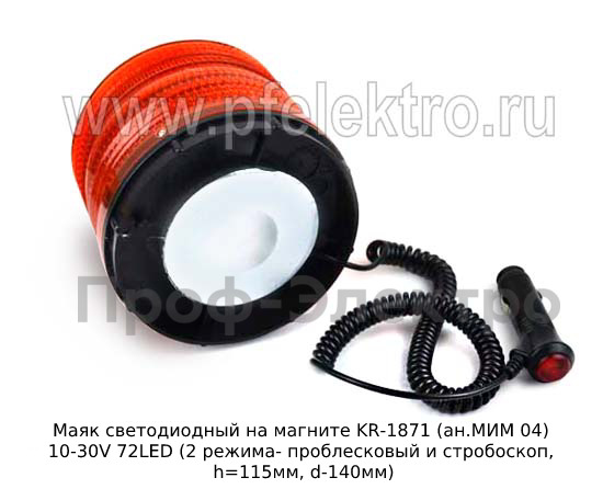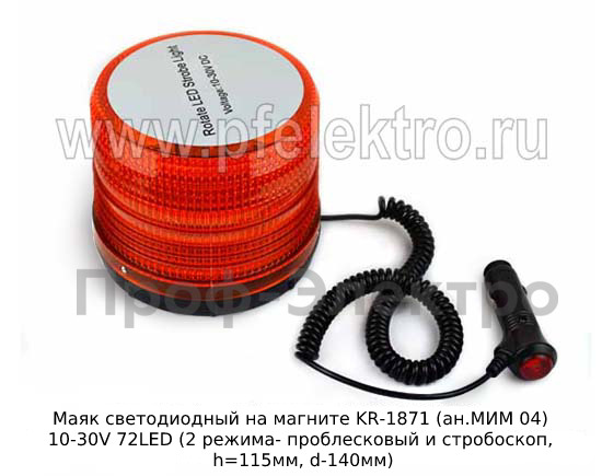 Артикул: Маяк светодиодный на магните KR-1871 (ан.МИМ 04) 10-30V 72LED
