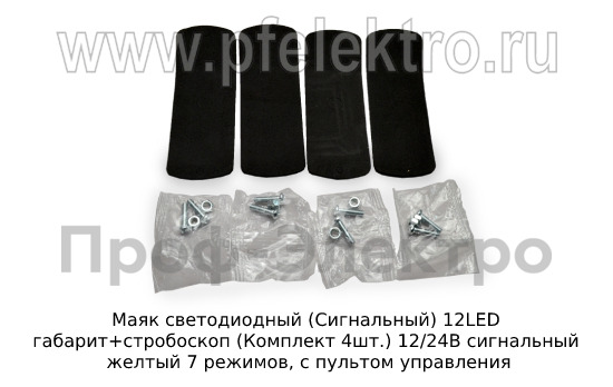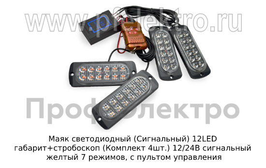 Маяк светодиодный (Сигнальный) 12LED габарит+стробоскоп (Комплект 4шт.) 12/24В Маяк сигнальный желтый 7 режимов, с пультом управления (К)