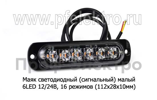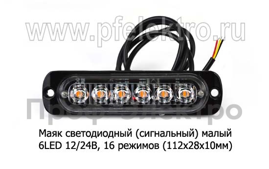 Маяк светодиодный (Сигнальный желтый) малый 6LED 12/24В Сигнальный огонь, светодиодный 6 LED, 16 режимов (112х28х10) дорожная и спецтехника (К)