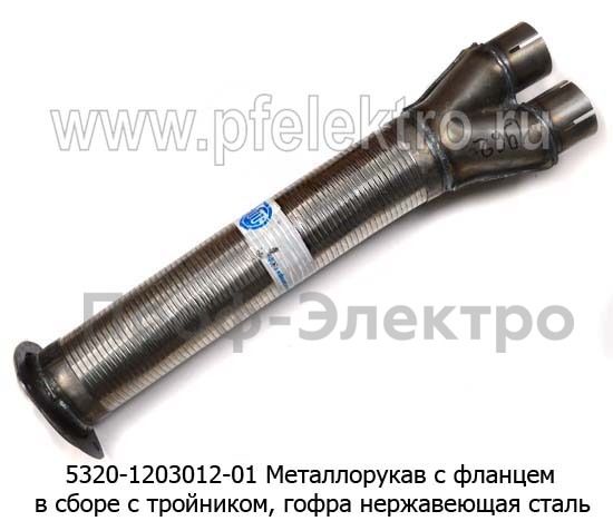 Металлорукав с фланцем, в сборе с тройником (5320-1203012-01) Металлорукав для камаз, гофра нерж.сталь (4859.12.000)