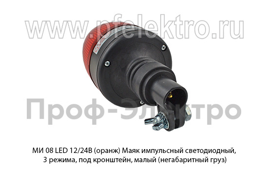 МИ 08 LED 12/24В (оранж) Маяк импульсный светодиодный, 3 режима, под кронштейн, малый (негабаритный груз), все т/с (Сакура)