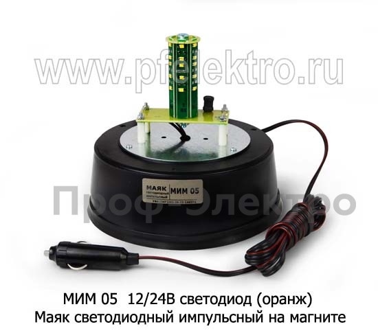 МИМ 05 12/24В светодиод (оранж) Маяк светодиодный (стробоскоб) импульсный на магните, дорожная и спецтехника (Сакура)