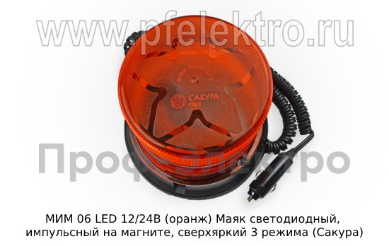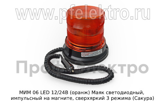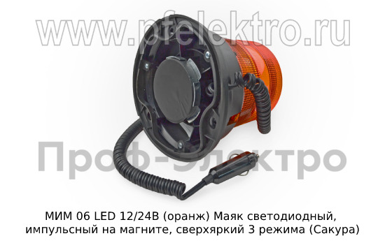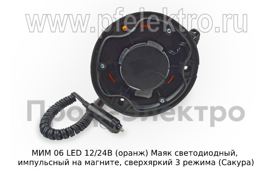 МИМ 06 LED 12/24В (оранж) Маяк светодиодный, импульсный на магните, сверхяркий 3 режима, дорожная и спецтехника (Сакура)