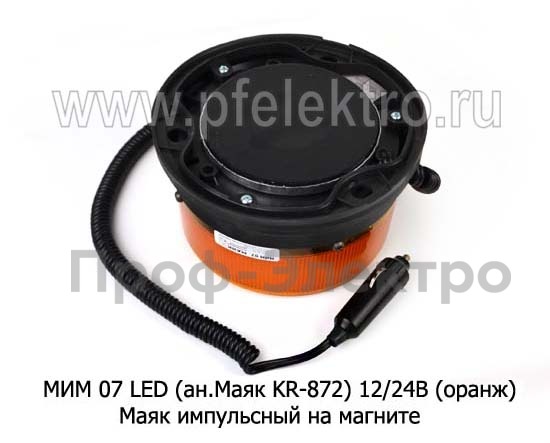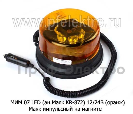 МИМ 07 LED 12/24В (оранж) Маяк светодиодный, импульсный на магните, сверхяркий 3 режима, дорожная и спецтехника (Сакура)