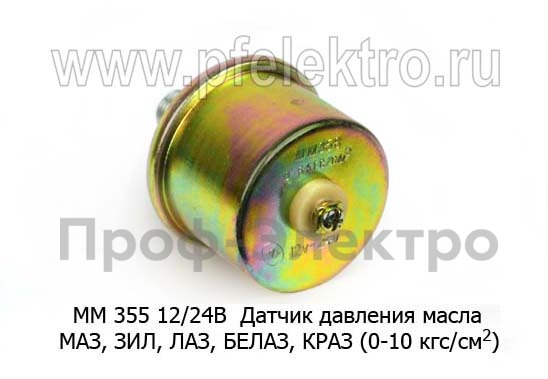 ММ 355 12/24В Датчик давления масла (0-10 кгс/см2) маз-500, зил, лаз, ЯМЗ-238, белаз, краз (К)