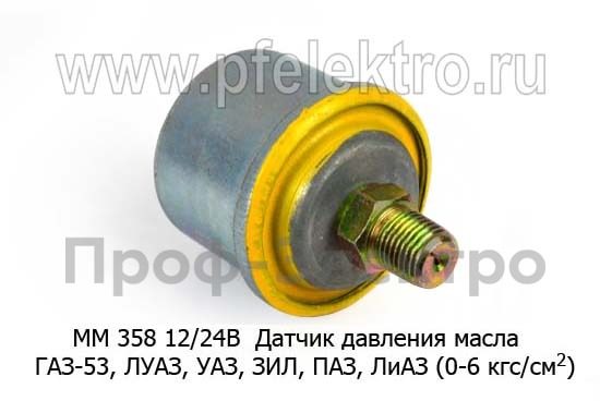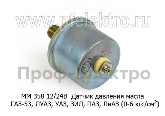 ММ 358 12/24В Датчик давления масла (0-6 кгс/см2) для газ-53, луаз, уаз, зил, паз, лиаз (К)