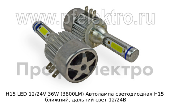 Н15 LED 12/24V 36W (3800LM) с вентилятором Автолампа светодиодная Н15 ближний, дальний свет, все т/с 12/24В (К)