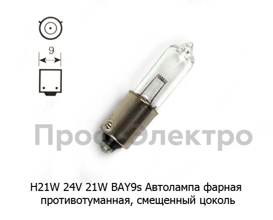 Н21W 24V 21W BAY9s, см/ц (2400) Автолампа галоген H21 противотуманная, 21W BAY9s, смещенный цоколь, все т/с 24В (К)