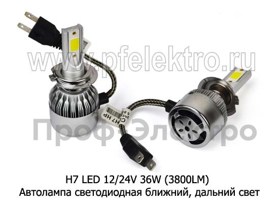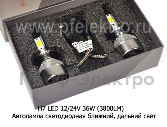 Н7 LED 12/24V 36W (3800LM) с вентилятором Автолампа светодиодная Н7 ближний, дальний свет, все т/с 12/24В (К)