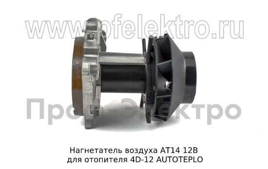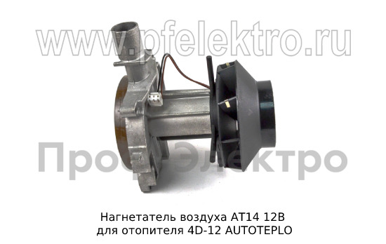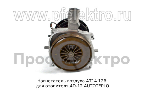 Нагнетатель воздуха АТ14 12В для отопителя 4D-12 AUTOTEPLO от компании ТеплоАвто - это надежное и эффективное устройство, предназначенное для подачи воздуха в отопительное устройство автомобиля.