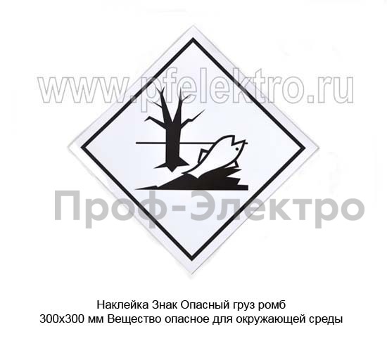 Наклейка Знак Опасный груз ромб Наклейка 300х300 мм Вещество опасное для окружающей среды