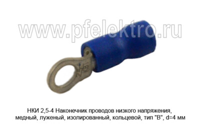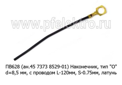 Наконечник, тип "О", d=8,5 мм, с проводом L-120мм, S-0,75мм, латунь, все т/с (Диалуч)
