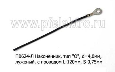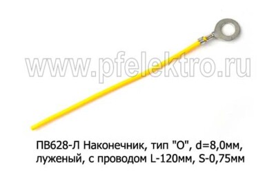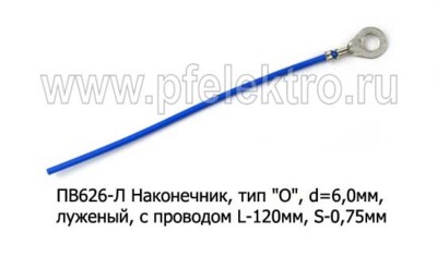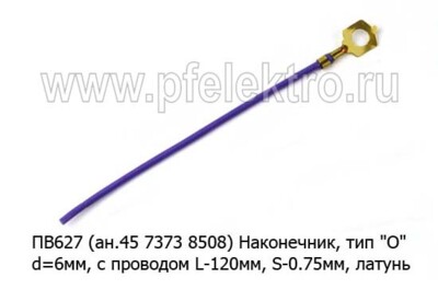 Наконечник, тип "О", d=6,0 мм, с проводом L-120мм, S-0,75мм, латунь, все т/с (Диалуч)