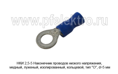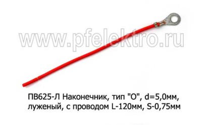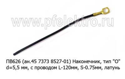 Наконечник, тип "О", d=5,5 мм, с проводом L-120мм, S-0,75мм, латунь, все т/с (Диалуч)