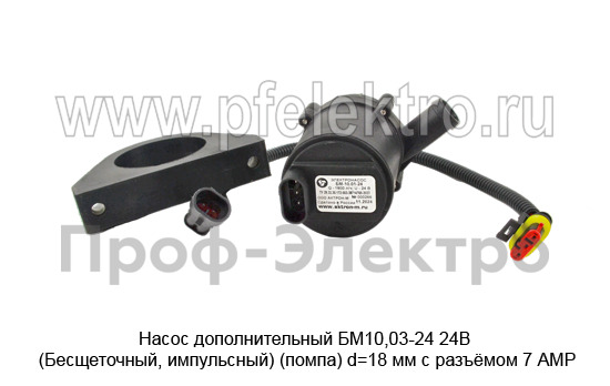 Насос дополнительный БМ10,03-24 24В (Бесщеточный, импульсный) Насос дополнительный, (помпа) d=18 мм с разъёмом 7 АМР для всех отопителей (Актрон-М)