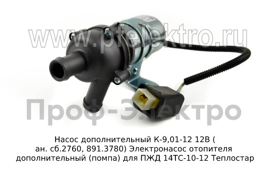 Насос дополнительный К-9,01-12 12В (ан. сб.2760, 891.3780) Электронасос отопителя дополнительный (помпа) для ПЖД 14ТС-10-12 Теплостар (Актрон-М)