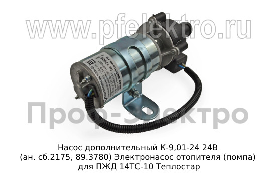Насос дополнительный К-9,01-24 24В (ан. сб.2175, 89.3780) Электронасос отопителя дополнительный (помпа) для ПЖД 14ТС-10 Теплостар (Актрон-М)
