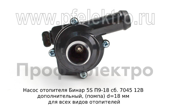 Артикул: Насос отопителя Бинар 5S П9Н-18 сб.10450 12В (ан. сб.7045)