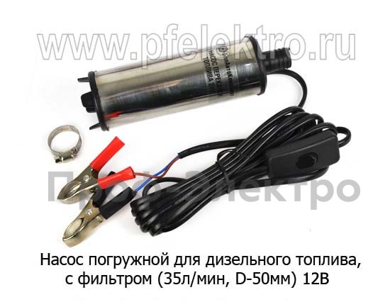Насос погружной 12В Насос с фильтром, для перекачки дизельного топлива, (D-50мм) производительность 35л/мин, (К)